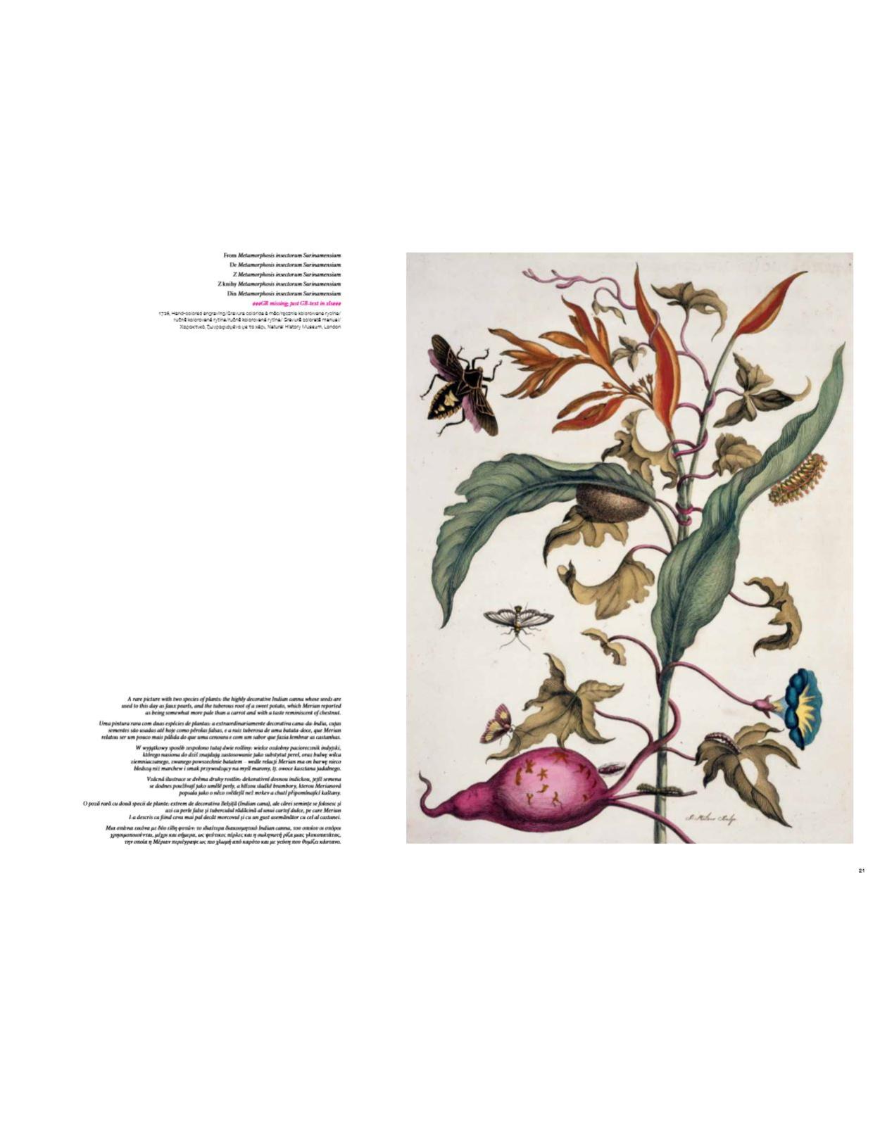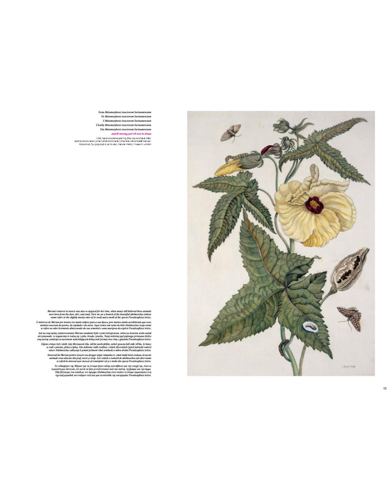Maria Sibylla Merian (1647-1717) a ocupat o pozitie speciala atat în lumea stiintifica, cat si în cea artistica. Ea a fost una dintre pionierii entomologiei. Era un artist si cercetator exceptional, descoperitor. Picturile sale de flori, fluturi si alte insecte, pe care le-a cercetat în Europa si în timpul calatoriei sale în Surinam, înca încanta cu frumusetea si cantitatea de detalii.